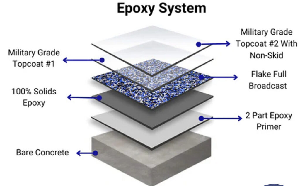 Decorative epoxy coatings using carpet stone and flakes that add texture and depth to your floors.