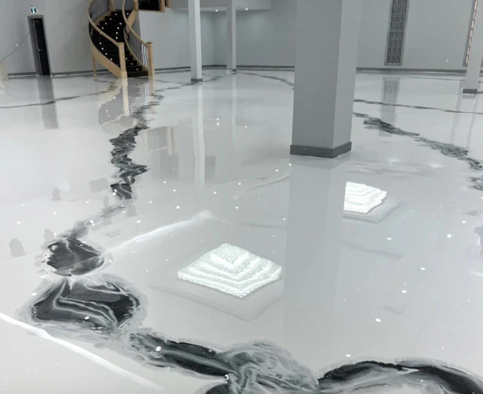 Innovative epoxy applications on walls for a modern and durable artistic finish.